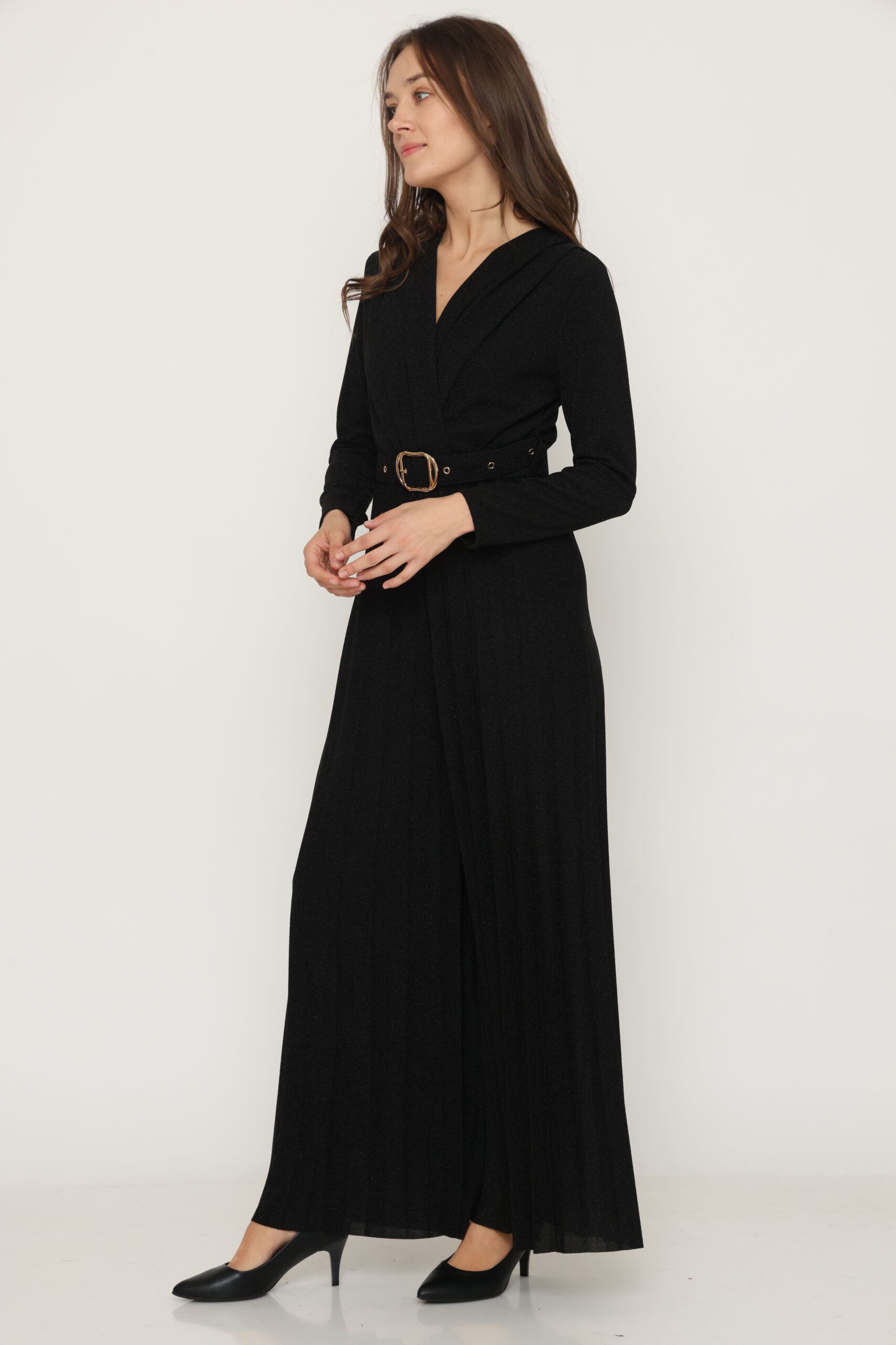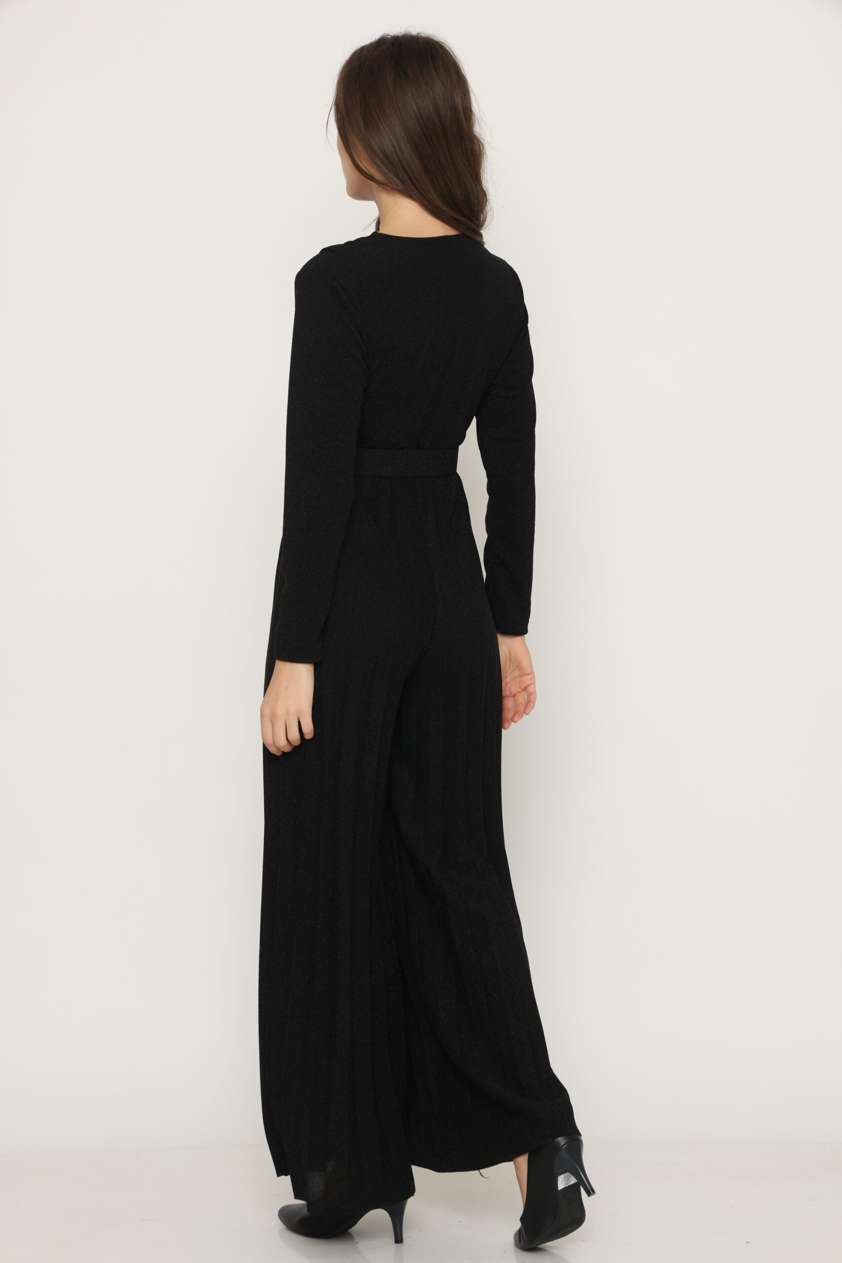 אוברול רוברטה מבית המותג S.T ITALIA. אוברול ארוך עם גומי במותניים, בגימור מנצנץ. מגיע במידה וואן סייז. הרכב בד: 43% פוליאסטר, 52% מטליקה, 5% אלסטן. מידות: היקף חזה 90 ס"מ, מותן 80 ס"מ, אורך 145 ס"מ.
