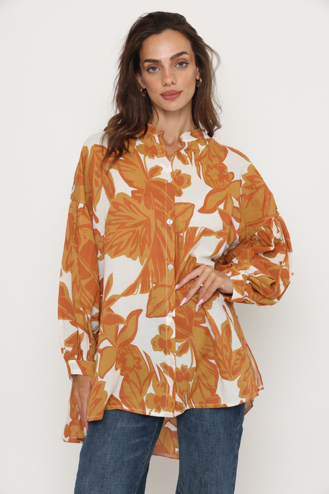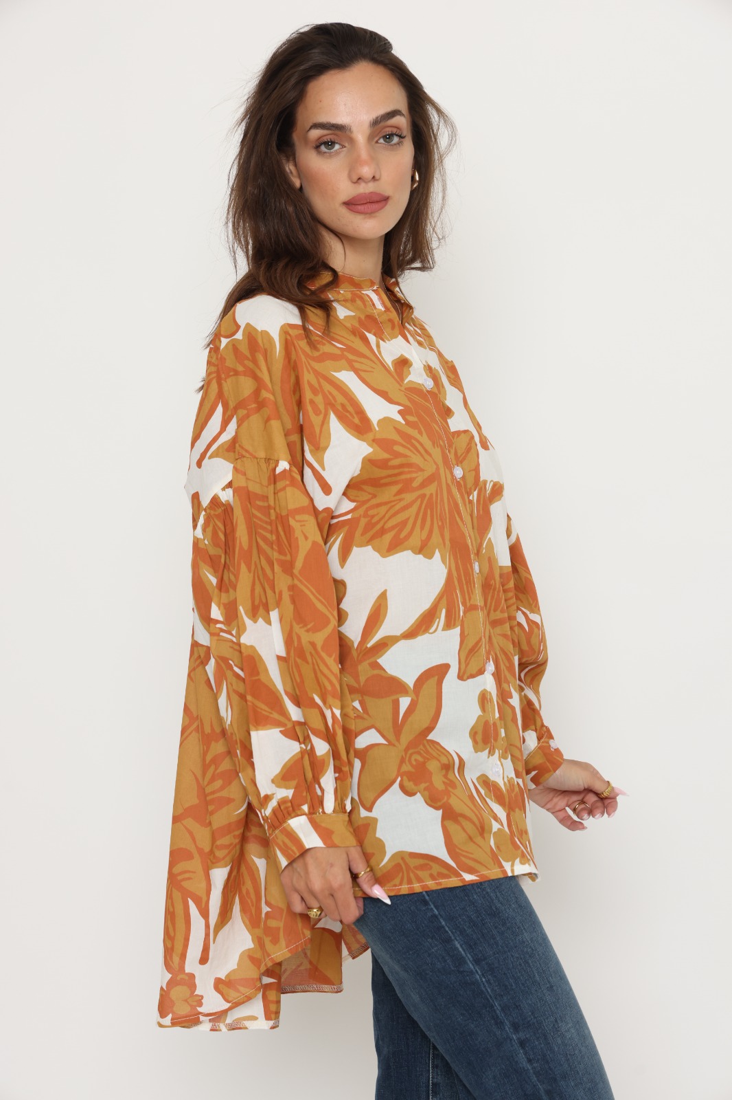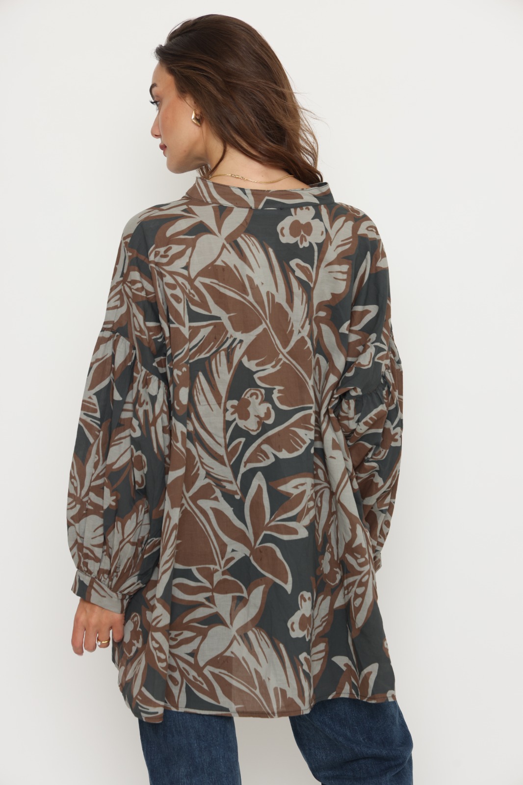 חולצת אמבילה מבית המותג S.T ITALIA. חולצת אובר סייז ארוכה עם שרוולים נפוחים. מגיעה במידה וואן סייז. הרכב בד: 100% כותנה. מידות: היקף 136 ס"מ אורך 77 ס"מ.