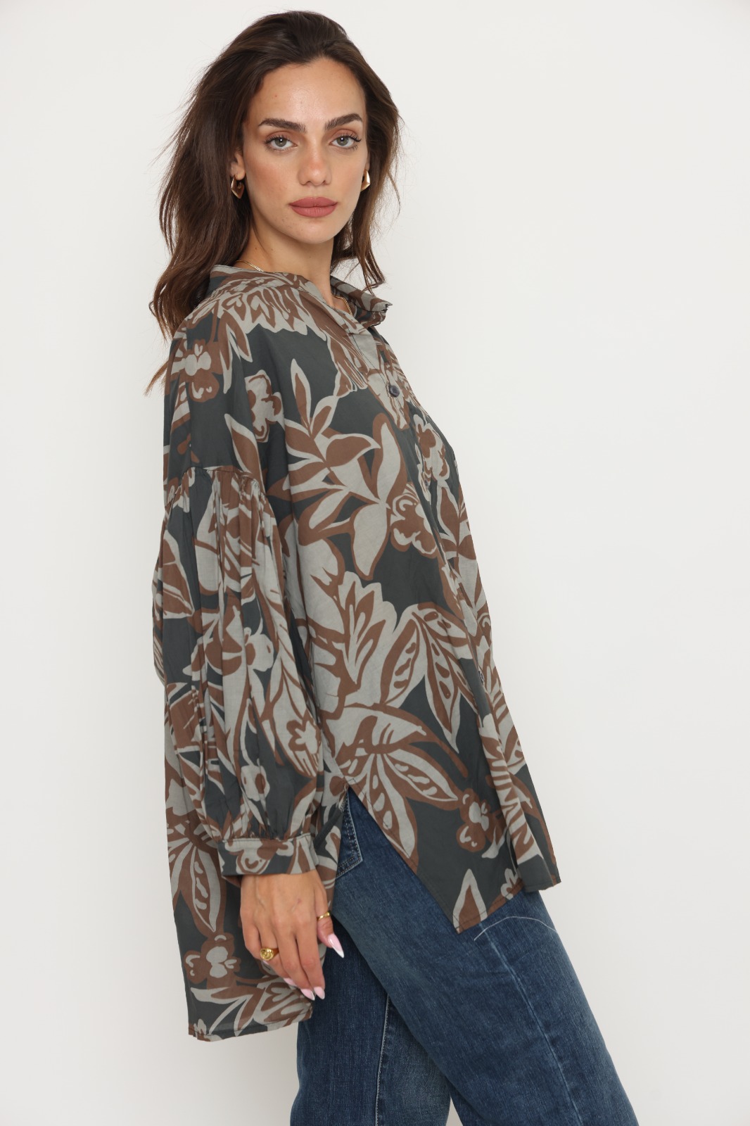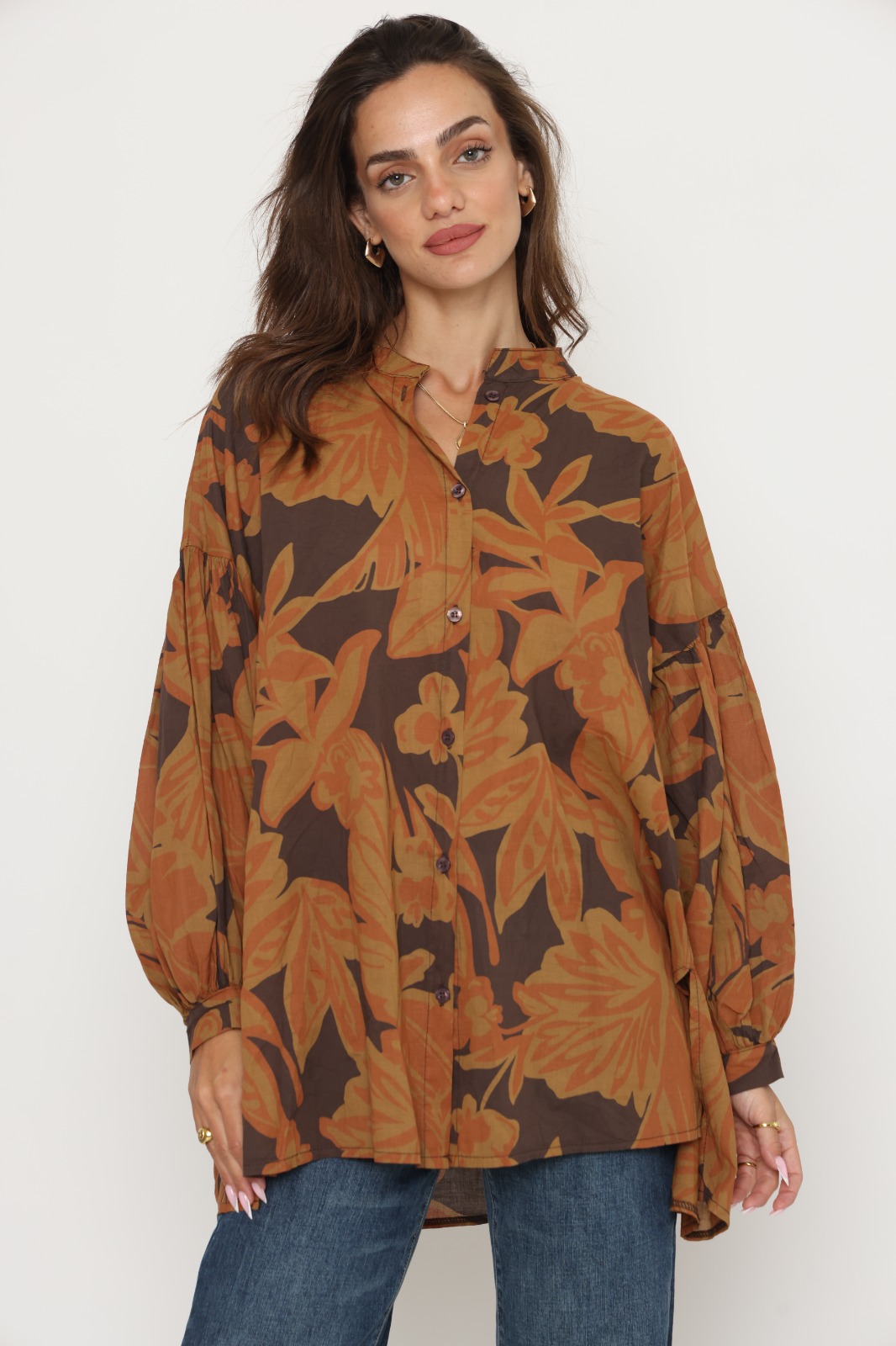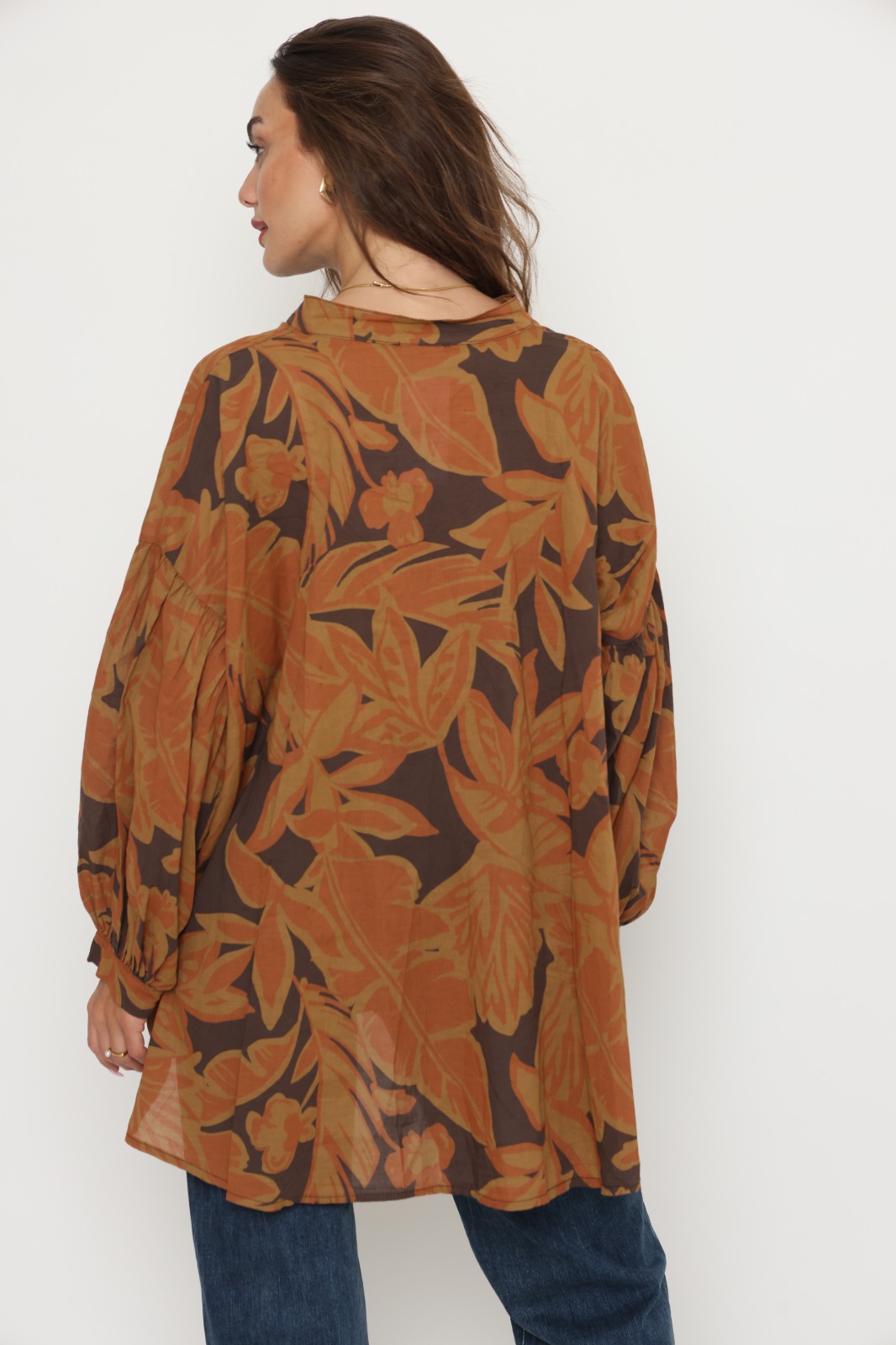 חולצת אמבילה מבית המותג S.T ITALIA. חולצת אובר סייז ארוכה עם שרוולים נפוחים. מגיעה במידה וואן סייז. הרכב בד: 100% כותנה. מידות: היקף 136 ס"מ אורך 77 ס"מ.