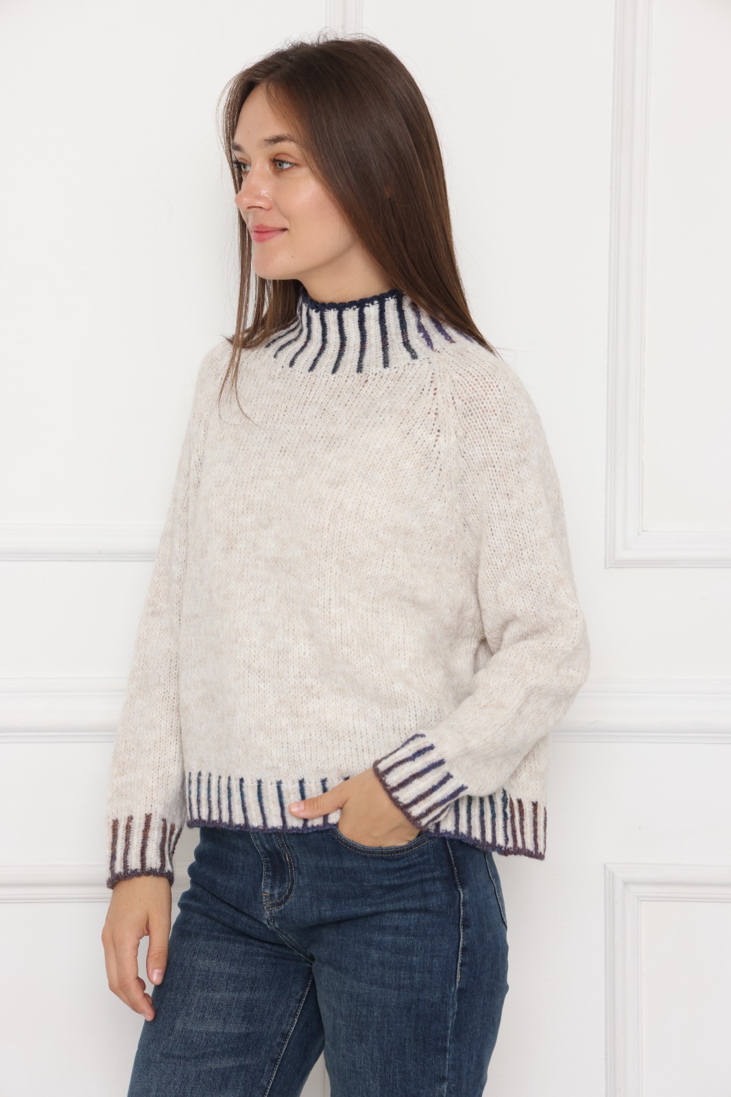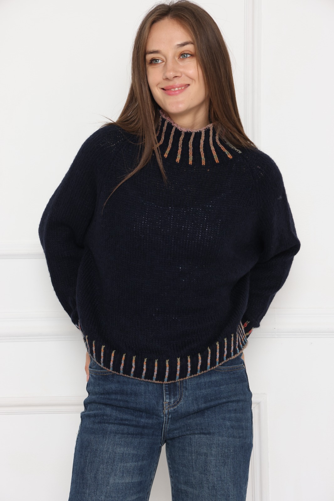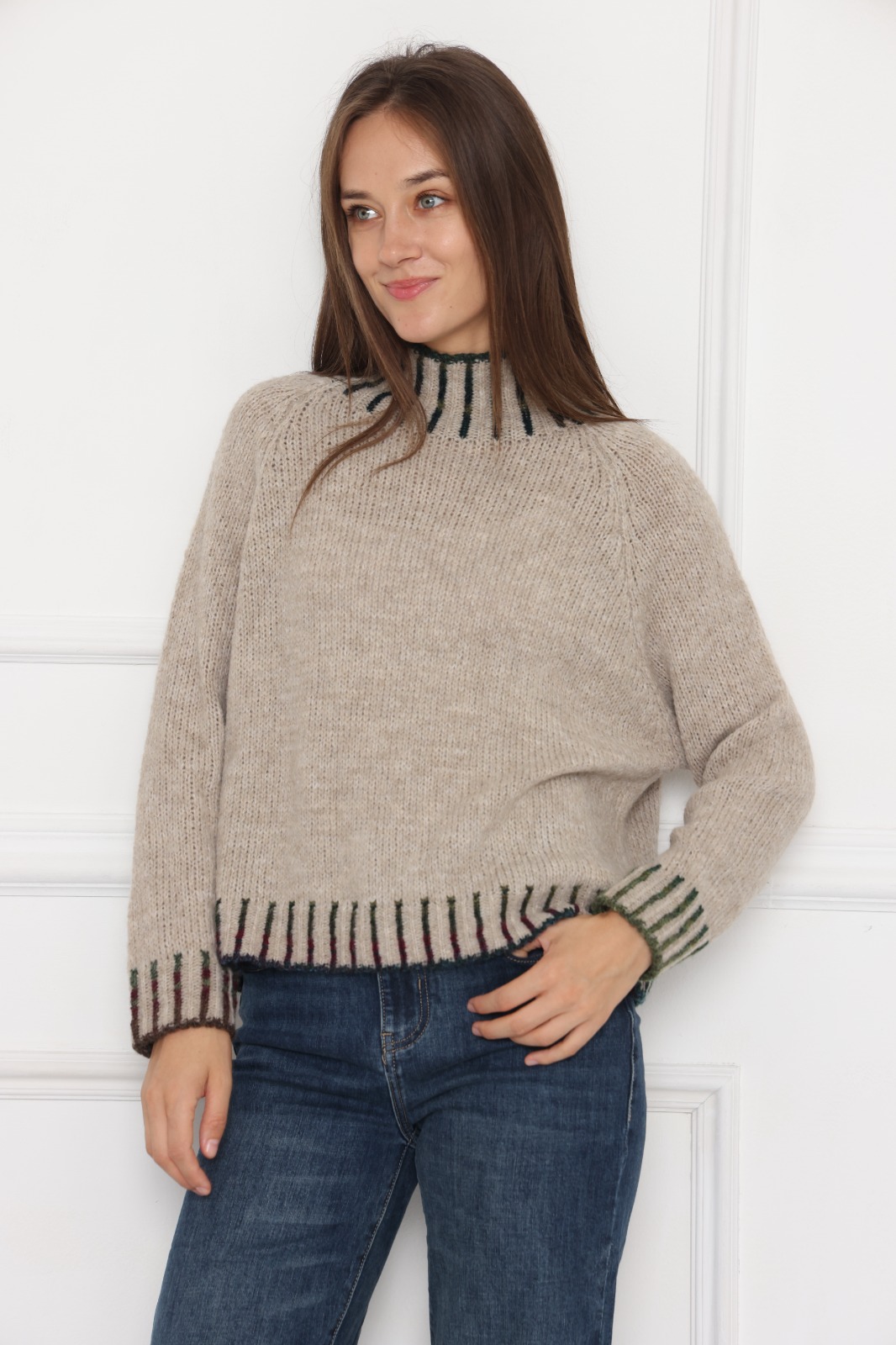 סריג נוטה מבית המותג S.T ITALIA. סריג גולף עם תיפורים צבעוניים. מגיע במידה וואן סייז. הרכב בד: 52% אקריל 22% פוליאסטר 18% צמר 8% ויסקוזה. מידות: היקף 112ס"מ אורך 55ס"מ.