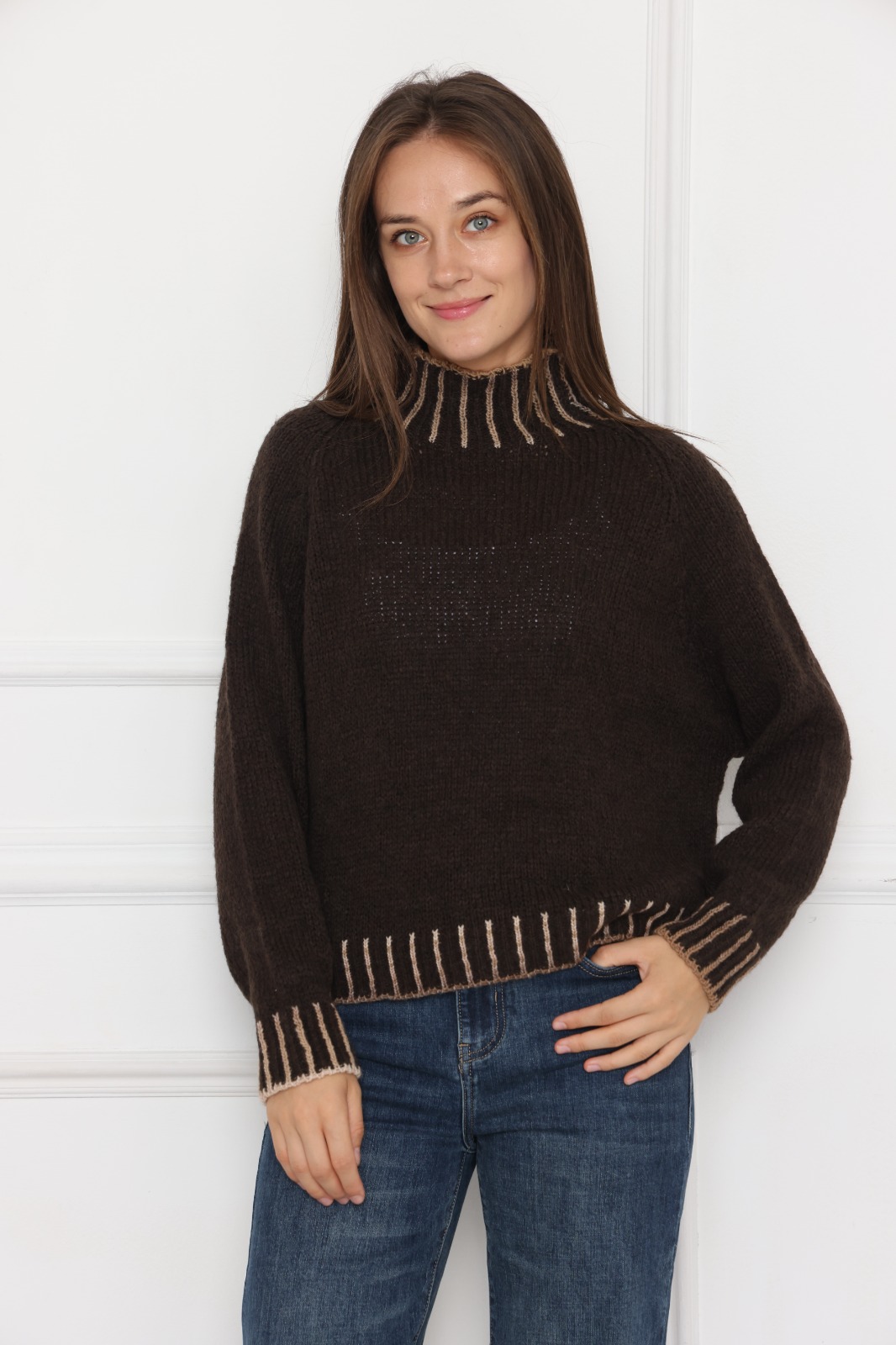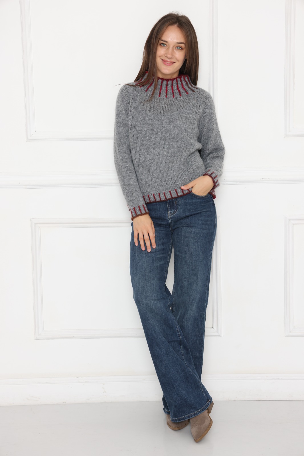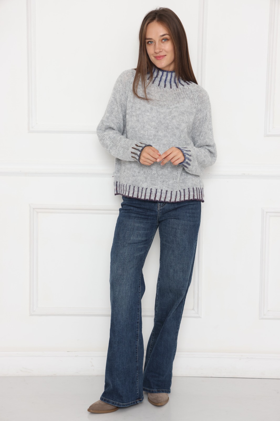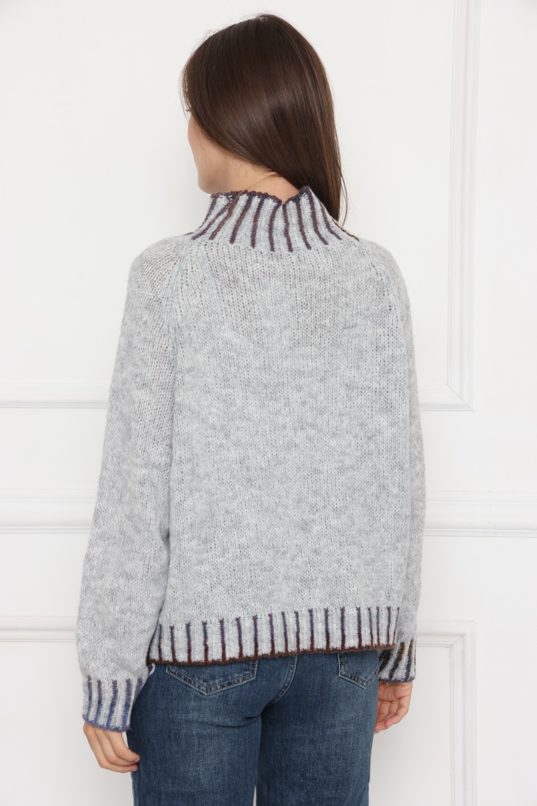 סריג נוטה מבית המותג S.T ITALIA. סריג גולף עם תיפורים צבעוניים. מגיע במידה וואן סייז. הרכב בד: 52% אקריל 22% פוליאסטר 18% צמר 8% ויסקוזה. מידות: היקף 112ס"מ אורך 55ס"מ.